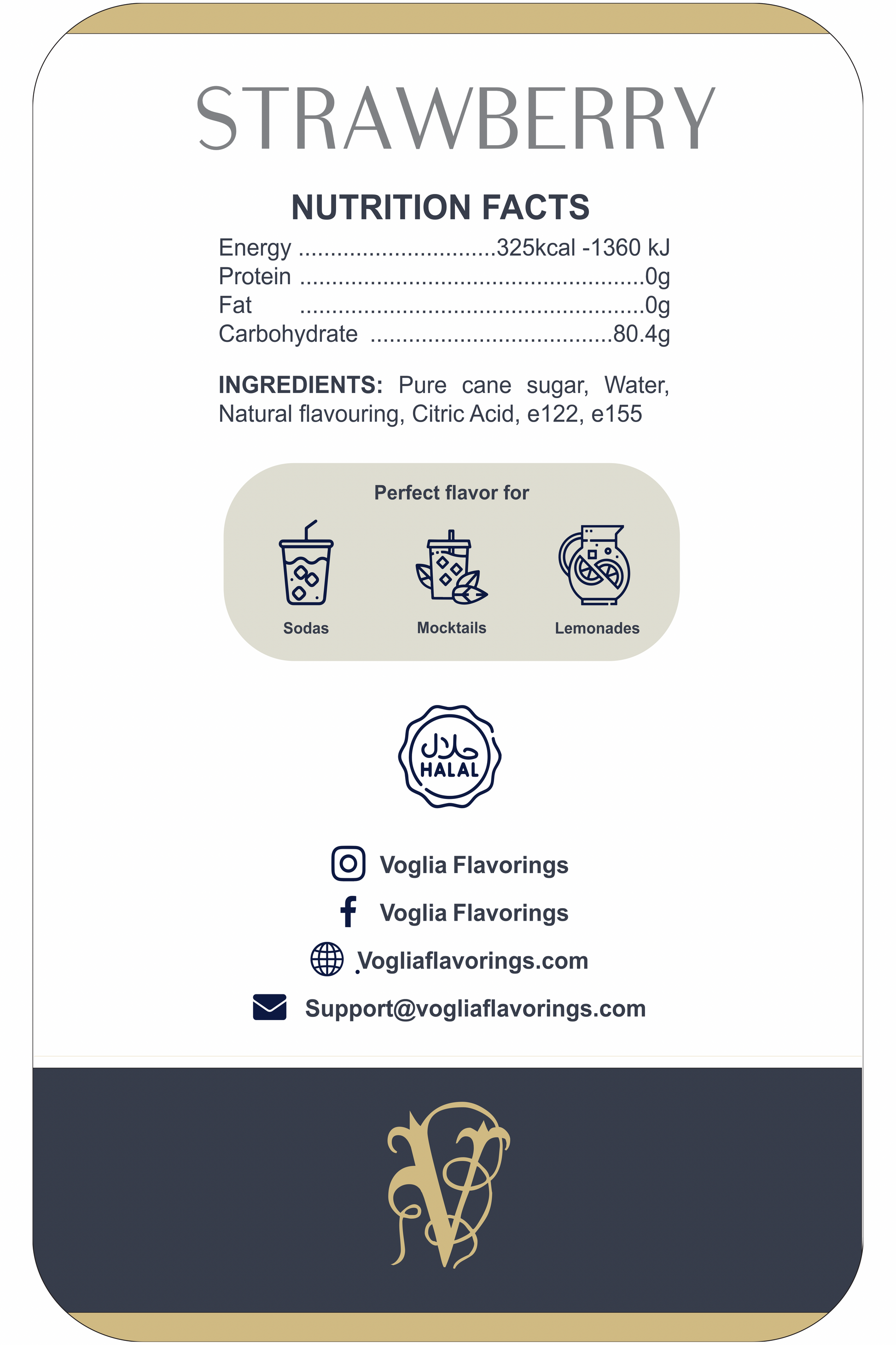 The taste of sun-ripened strawberries in every sip! Voglia Strawberry Fruit Syrup brings a naturally sweet and slightly tangy berry flavor, perfect for milkshakes, iced teas, lemonades, and dessert toppings.