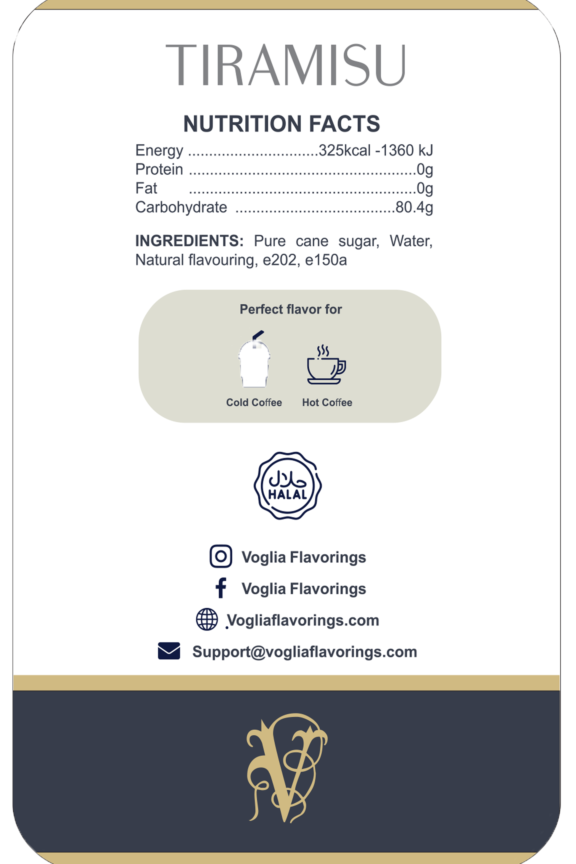 A decadent Italian classic in syrup form! Voglia Tiramisu Coffee Syrup blends the rich flavors of espresso soaked sponge, creamy mascarpone, and a hint of cocoa to recreate the timeless dessert in every cup.