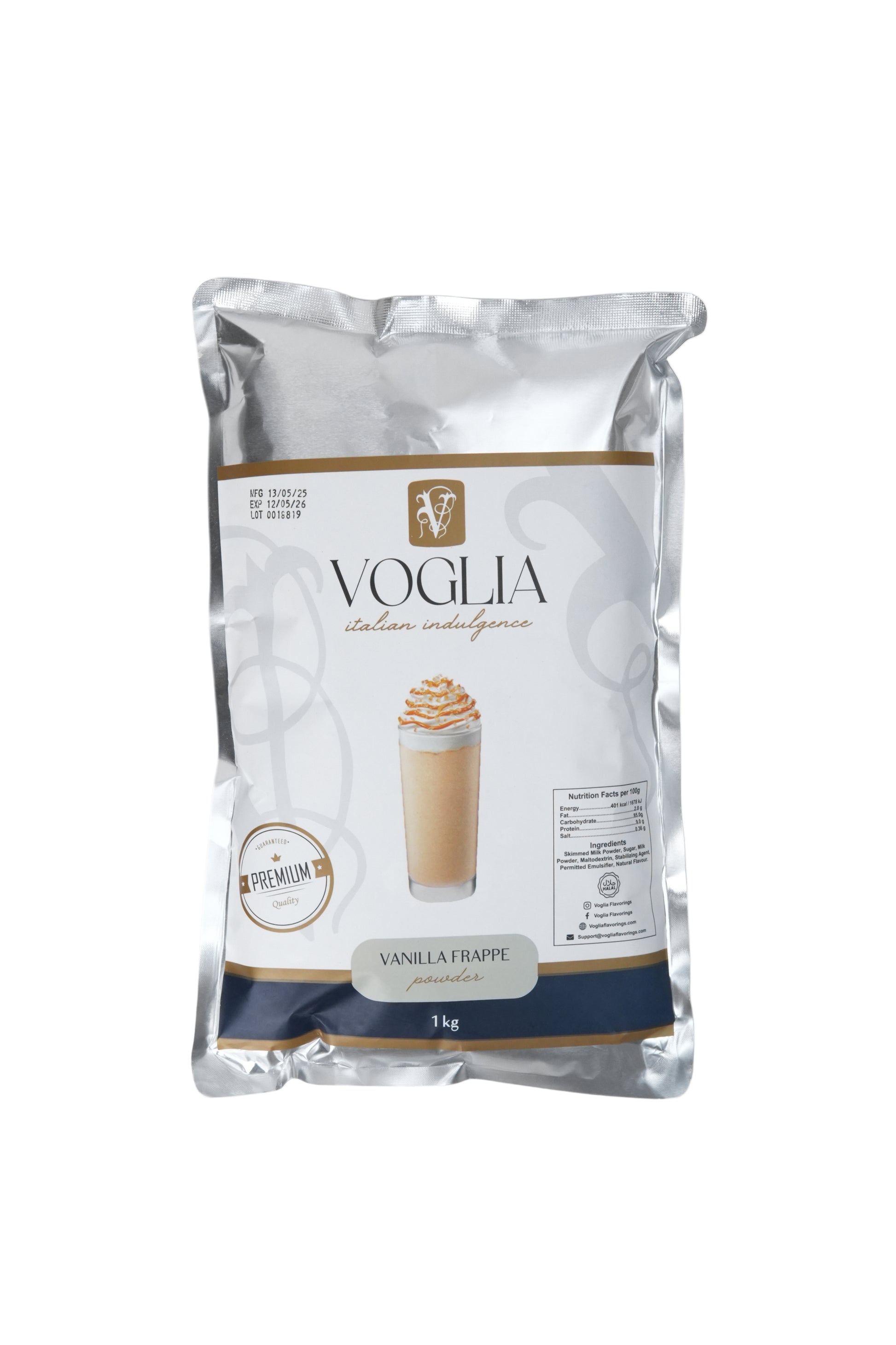 A timeless classic, Voglia Vanilla Frappé Mix delivers a rich and velvety vanilla flavor, creating a smooth and indulgent beverage that's perfect on its own or as a base for creative concoctions.